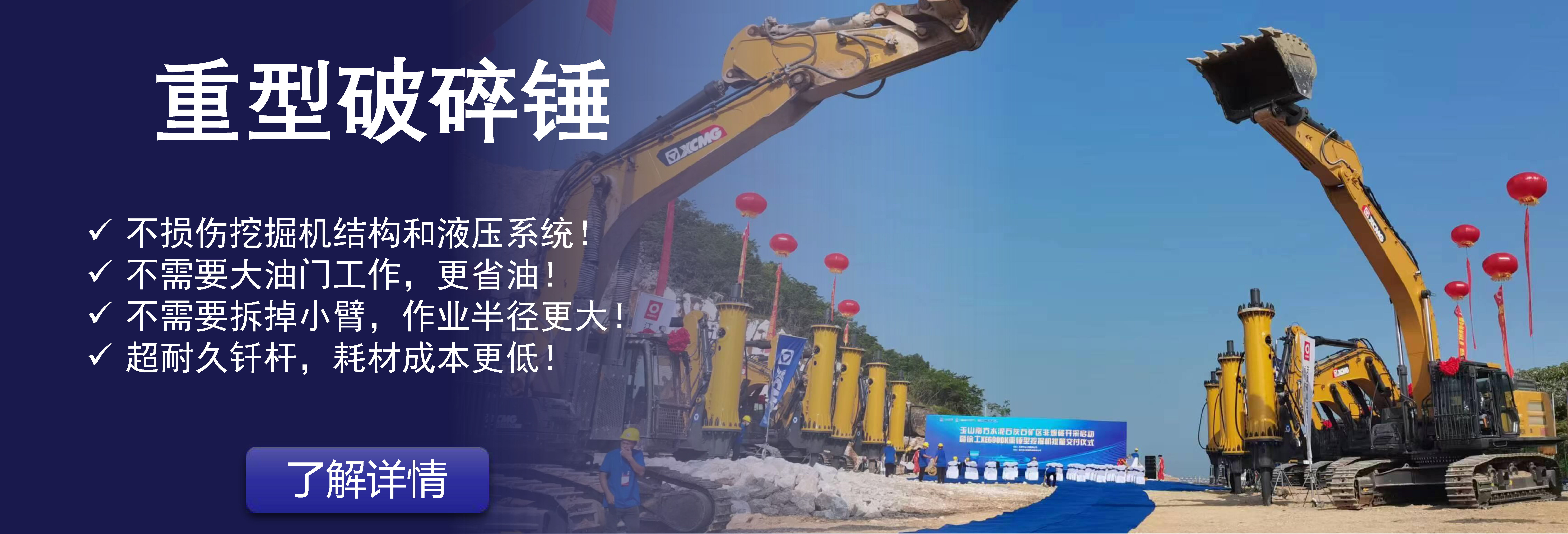 重型破碎錘特別適合硬脆巖石的開采,尤其是大理石、花崗巖等巖石。...